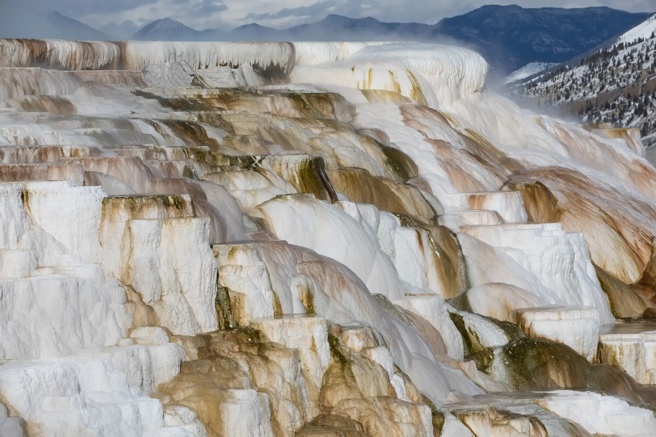 Once you’re settled, it’s time to step into Yellowstone itself. Just a short drive from town, you’ll find the surreal landscape of Mammoth Hot Springs.