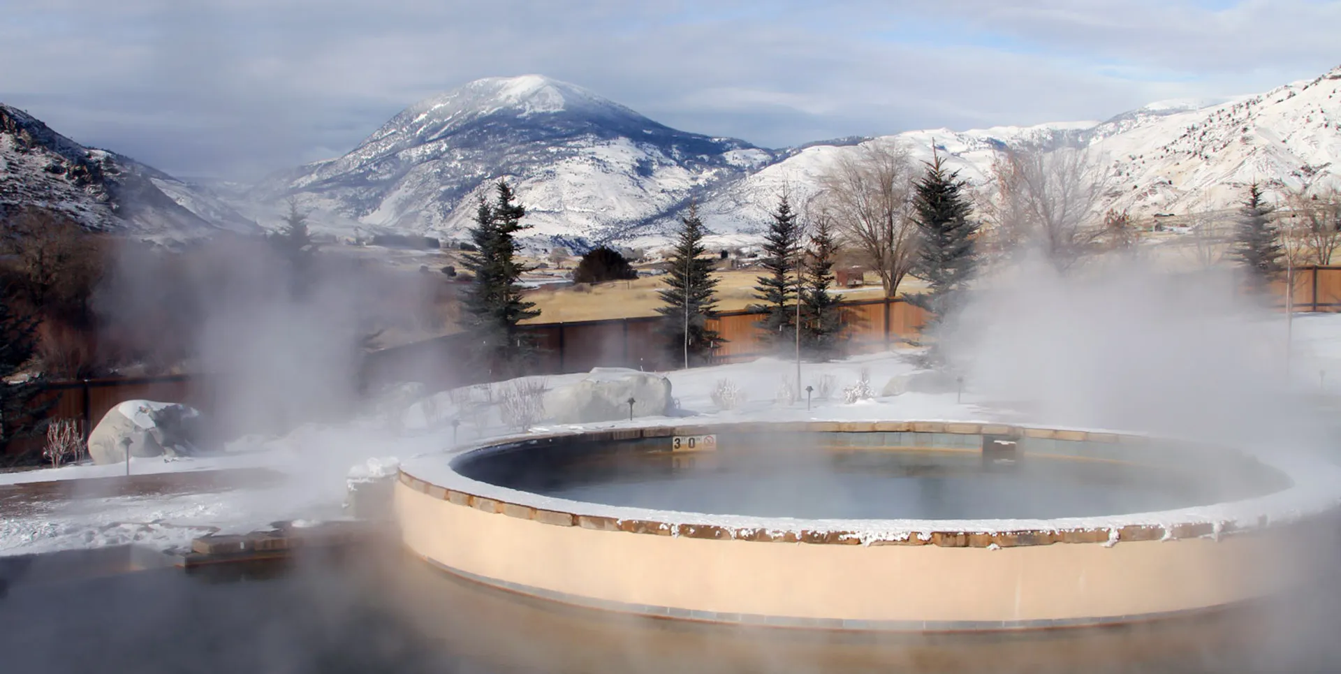 After a day in the winter wilderness, nothing feels better than soaking in the mineral pools at Yellowstone Hot Springs.